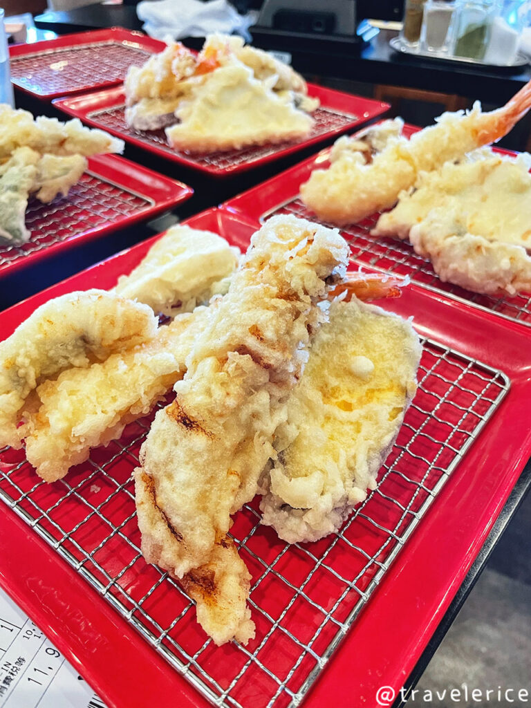 我在門口菜單展示區就有看到出名的富士山天丼,由滿滿的炸蝦組成,據說是三人份的餐點,因為怕吃不完所以我們沒有選擇,而且怕份量太多吃起來過度油膩,還是希望食物吃起來是美味的,以後有適合的機會再嘗試看看。