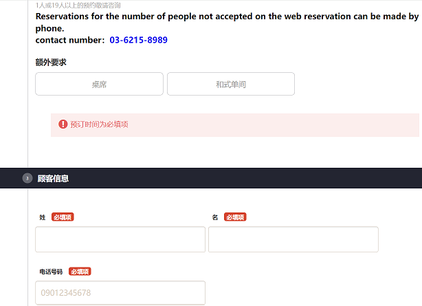 建議可以先上官方網站查詢確認,也可以直接在網路上訂位,目前開放可預約未來3個月的訂位,除了像是晴空塔店或是其他熱門地段的門市比較難搶,大多數都還算好訂位。要填寫的資料都不難,我是填寫護照上的英文姓名,電話記得改成國際碼886就可以,若要選包廂要另外付費。