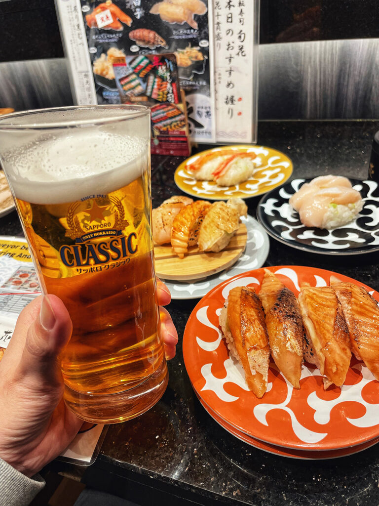 當天我是欣賞完五稜郭的點燈夜景後前來用餐,剛好是晚餐時間,店內客人不少,但幸運的是不用排隊順利入座。對於想要輕鬆享受迴轉壽司的遊客來說,這裡是個不錯的選擇。