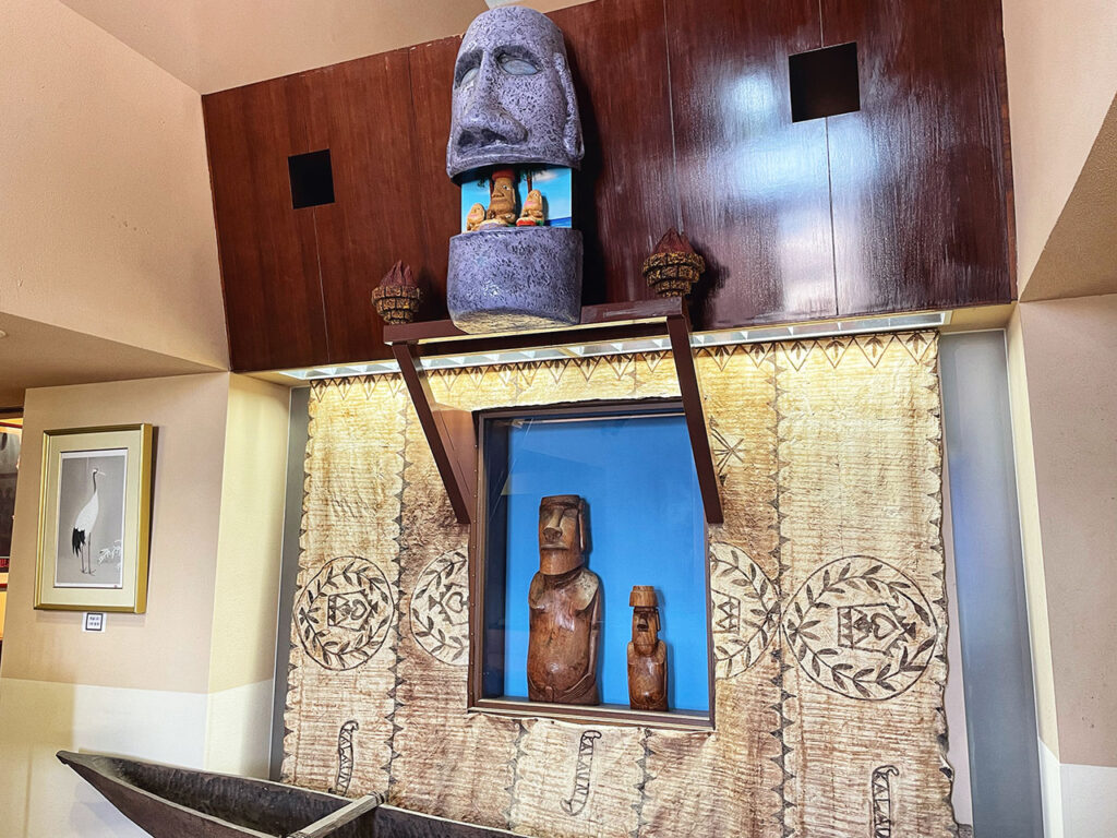 上方的建築物內有昆蟲標本館、餐廳、摩艾石像博物館,博物館介紹了艾摩石像的歷史故事。