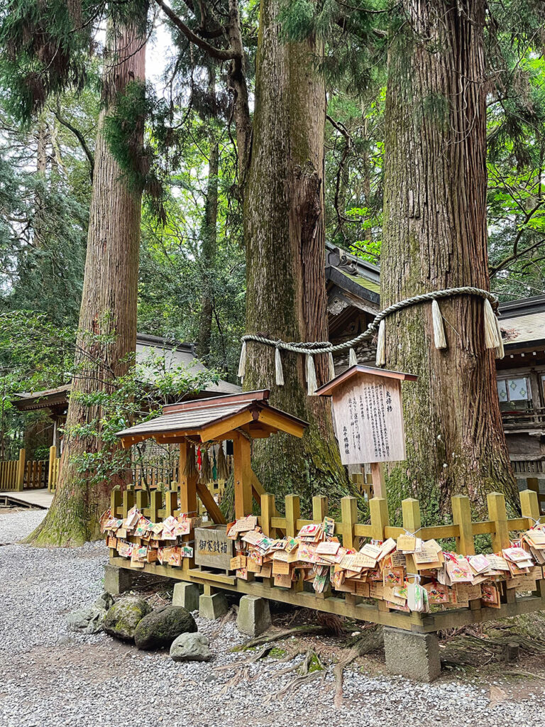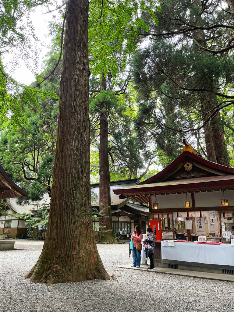 這邊也可以購買良緣御守,境內矗立許多高大的杉木,其中以結緣聞名的夫婦杉最受矚目。