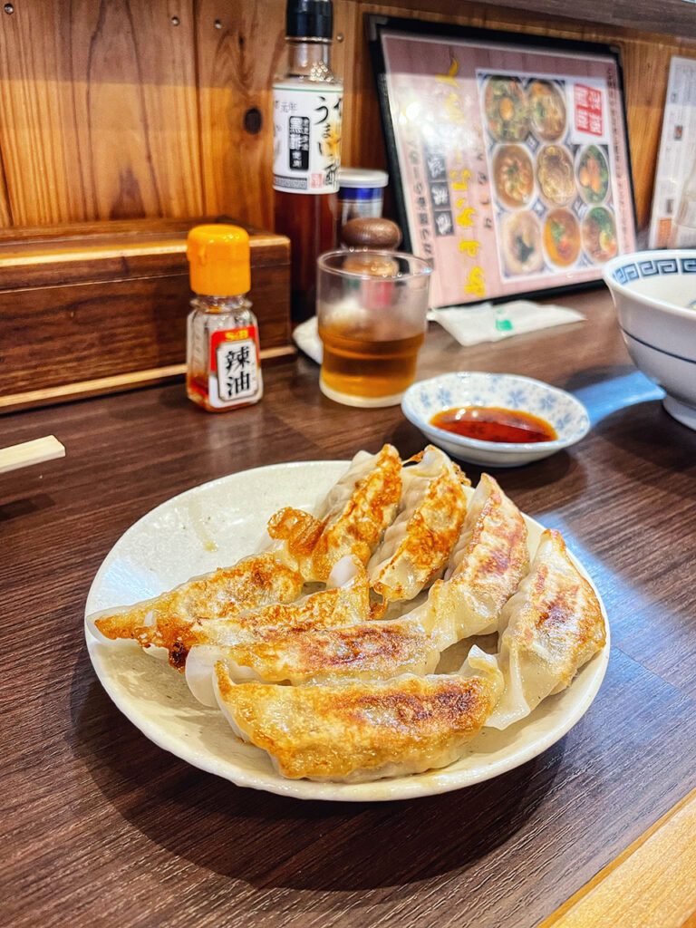 我點的是雞湯醬油拉麵跟燒餃子,配料非常簡單只有叉燒加上蔥,但是我非常喜歡,麵條有嚼勁而且湯很好喝,燒餃子口感薄皮酥脆也很好吃,重點是餐點價格都非常便宜,CP值非常高,我喜歡這種簡單又平凡的美味。