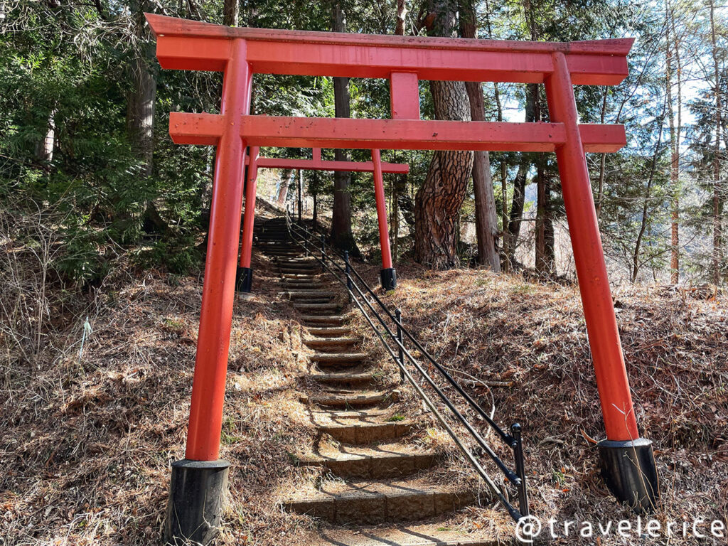河口淺間神社入口就有個大鳥居,如果你的目的地跟我們一樣是天空鳥居遙拜所的話,就直接從左邊的山路一路往上走就對了,途中會經過神秘的階梯路,但這段路不好走。