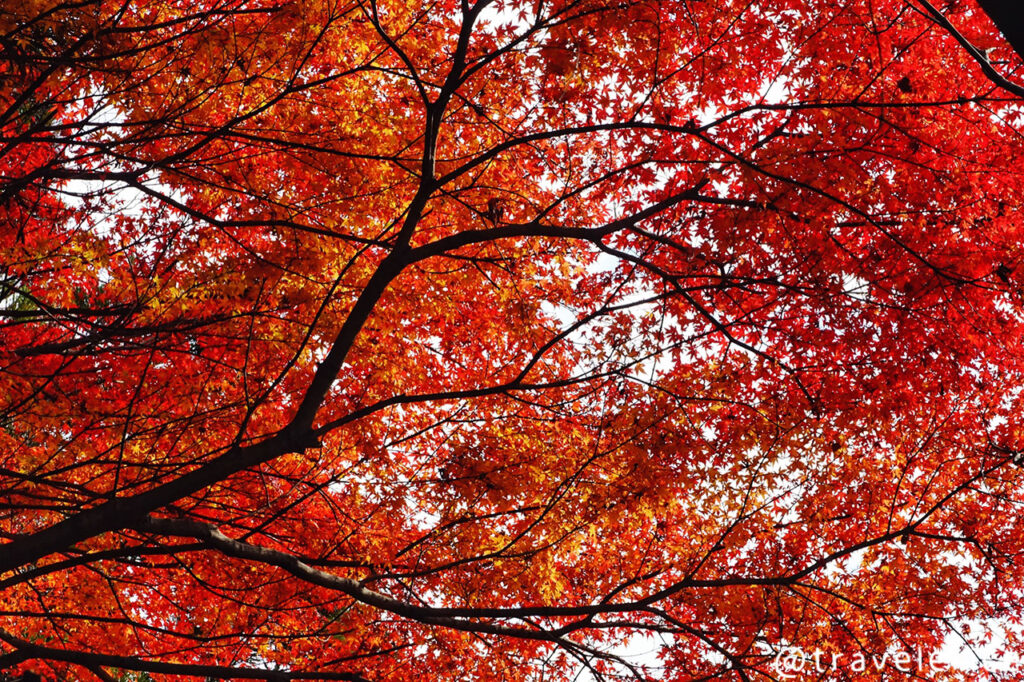 這邊的楓樹展現多種色彩,從柔和的金黃色、明亮的橙色,到熾熱的火紅色,不斷地交錯著點綴整個金鱗湖園區。